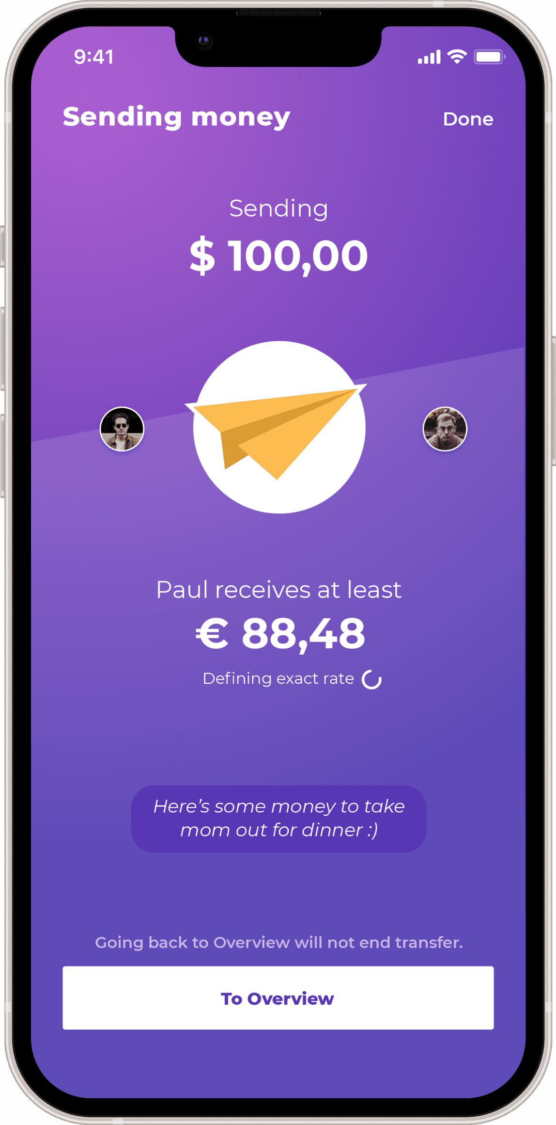 Al enviar dinero a un amigo, Beans sabrá si se necesita una conversión. Conversión o no, el dinero llegará casi al instante.